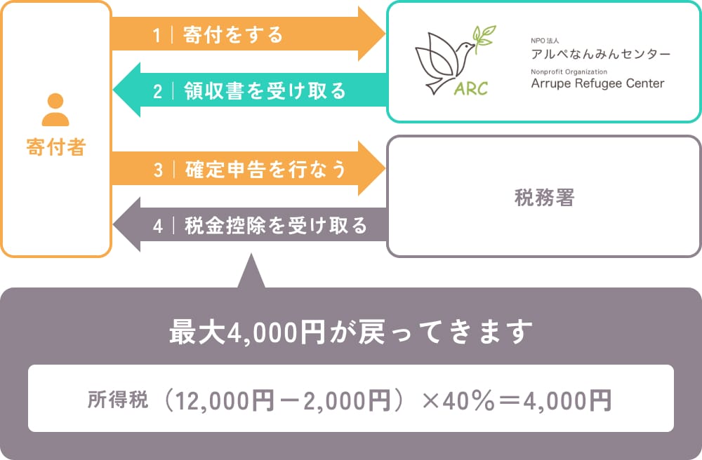 確定申告を行っていただくことで、所得税の寄付金控除を受けることができます。